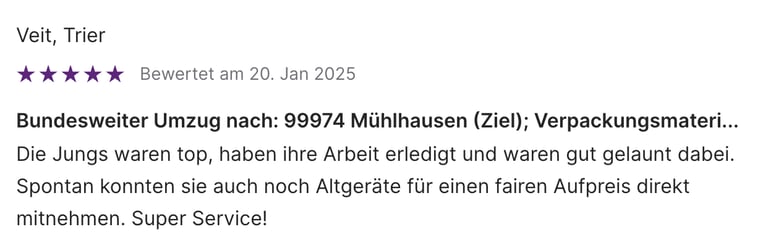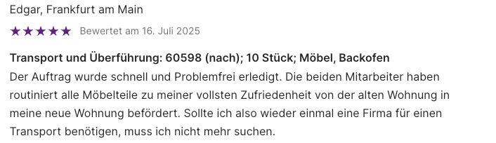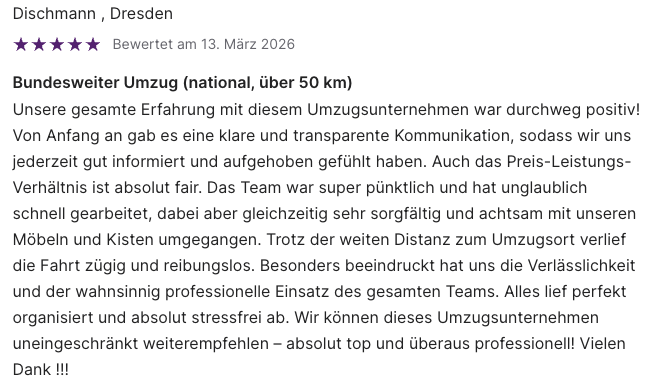 Maximaler Schutz für Ihr Eigentum mit erstklassigen Verpackungsmaterialien und erfahrenen Umzugsprofis. 100 % versichert, transparente Festpreise ohne versteckte Kosten und ein Rundum-Sorglos-Service.